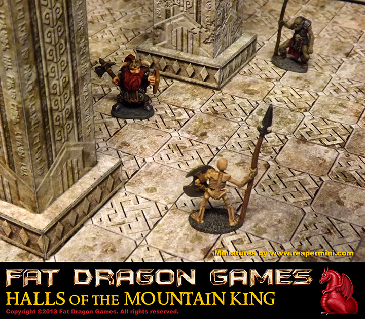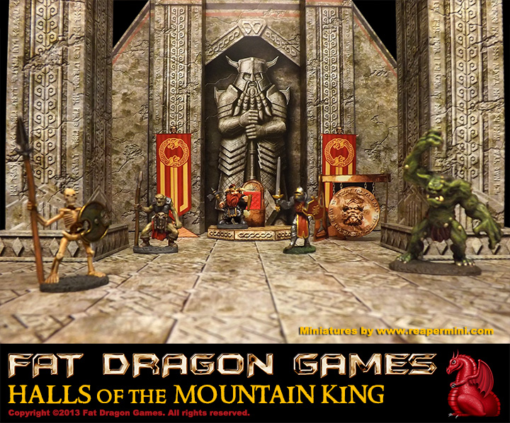 Halls of the Mountain King is the first release of Fat Dragon Games’ unprecedented epic dwarven citadel terrain series. The E-Z LOCK terrain system allows you to create fully modular 28mm scale terrain layouts for your RPG or wargame, in a downloadable PDF format, and once you have the set you can print and build as many pieces as you like and never run out or need to purchase more. Additionally, our layer options allow you to customize your terrain to suit your tastes. This new PDF terrain set features our exclusive modular E-Z LOCK terrain designs, allowing you to disassemble and easily store your designs between games.